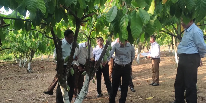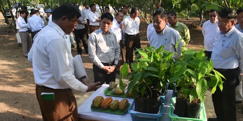 Union Minister for Agriculture, Livestock and Irrigation U Min Naung, along with Tanintharyi Region Chief Minister U MyatKo and departmental officials conducted inspection on the cocoa cultivation and operational technical services at Perennial Crops Research and Development Farm (Maliwun) of Perennial Crops Division under the Department of Agriculture on Saturday evening.