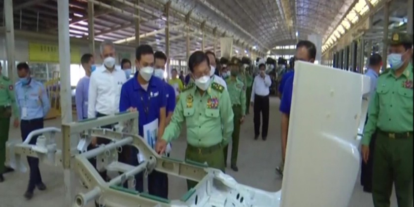 Later, the Prime Minister cordially greeted MSME entrepreneurs in Hpa-an. He then observed the display of foodstuff, personal goods, industrial products, regional handmade products, clothes and traditional medicines and asked about getting market. The Prime Minister and party then proceeded to Precision Auto Engineering Co.,Ltd that is a foreign investment company in the Hpa-an Industrial Zone.