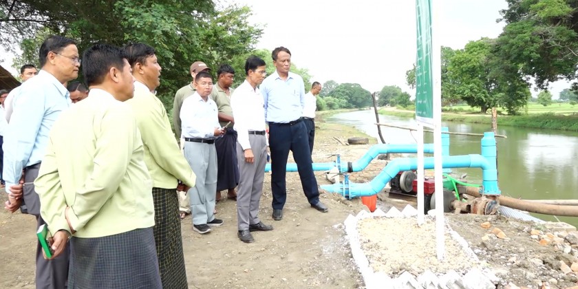 The Deputy Minister and party then inspected cultivation of GW-11 paddy strain and presented foodstuff for paddy transplanters. At the Ywa Thit Kalay village in Kala Haung villge-tract of Pwint Phyu township, they then looked into measures for irrigated water undertaken by the Ministry.