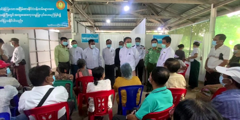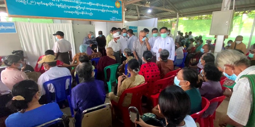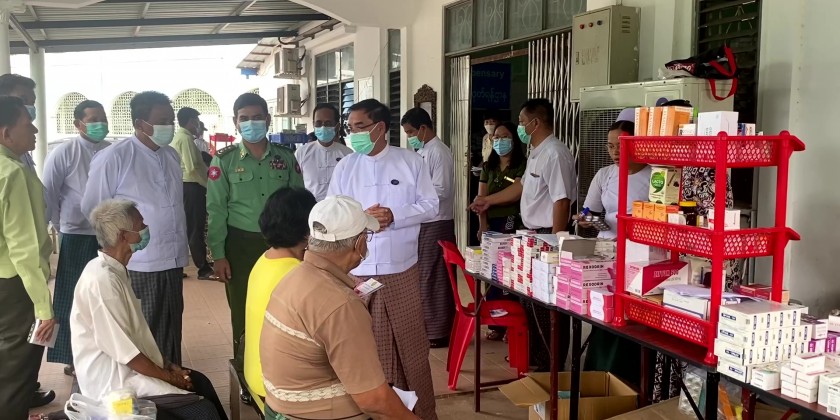 Bago Region Chief Minister U Myo Swe Win together with officials visited Bago General Hospital on 21st August and looked into rendering health care services to retired service personnel with the arrangement of Bago Region Government and participation of departmental officials, town elders, social organizations and volunteer groups in the activity.
