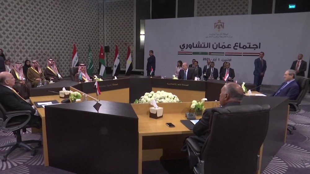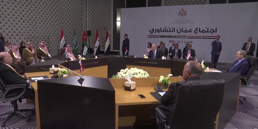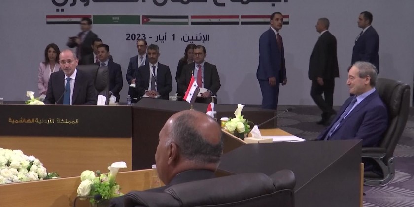 Regional leaders met in Amman on Monday to discuss Syria’s return to the Arab fold and a Jordanian proposal to reach a political solution to the Syrian conflict. The talks, hosted by Jordan's foreign minister, were attended by his counterparts from Syria, Saudi Arabia, Iraq and Egypt.A Jordanian spokesperson said the meeting was a follow-up to talks with the Arab Gulf countries, Jordan, Iraq and Egypt that were took place in Saudi Arabia last month.