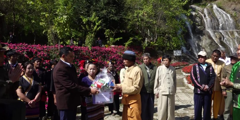 Shan State Chief Minister U Aung Zaw Aye, Triangle regional military command commander Major General Ni Lin Aung, State Ministers, Advocate General of the State and the departmental officials inspected Keuntung waterfall and Thit Ta Pin Hill in the morning on 18th February for the development of the tourism sector and to create job opportunities for the residents in Kengtung Township. And then, the Chief Minister and party provided medicines to the residents.