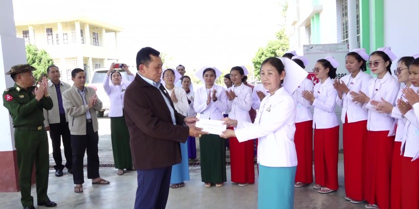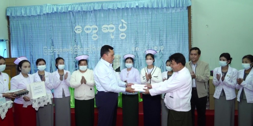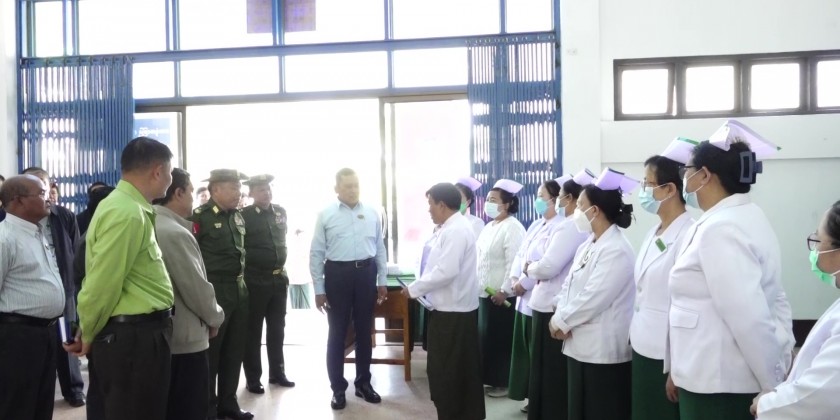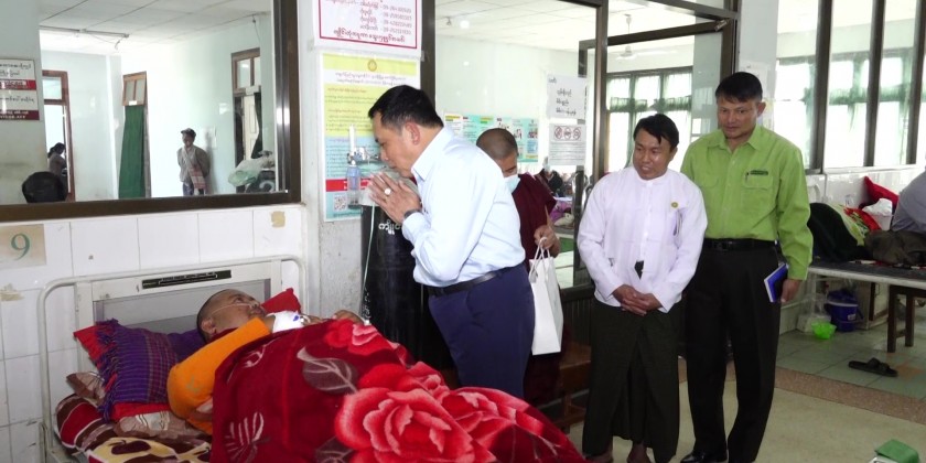Later, the Chief Minister and party visited Kengtung General Hospital and met with medical personnel and provided necessaries to the patients who are receiving medical treatments at the hospital. Then, the Chief Minister and officials also provided cash assistance and nutrient food to the medical personnel.