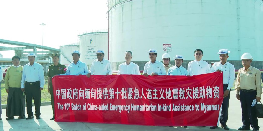 This was donated by the People's Republic of China to support rehabilitation measures following the severe Mandalay earthquake. Yangon Region Chief Minister U Soe Thein, concerned officials from relevent Ministries and Counsellor from Chinese Embassy in Myanmar Mr. Ouyang Daobing attended the ceremony.