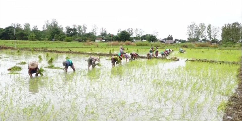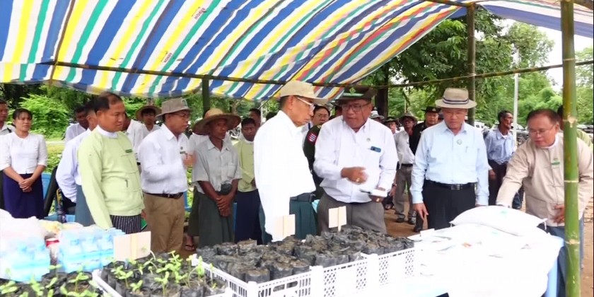 On 2nd October, Member of the State Administration Council Mahn NyeinMaung together with the Ayeyawaddy Region Chief Minister U Tin Maung Win and region ministers, oversaw the monsoon paddy replanting at the flood-affected farmlands in MyanAung District.