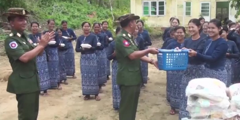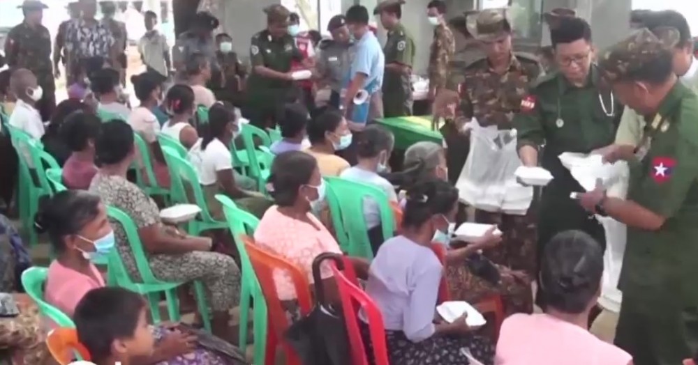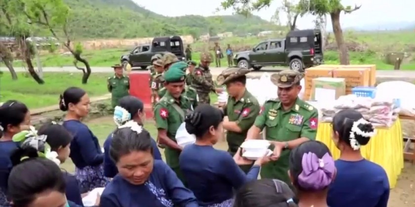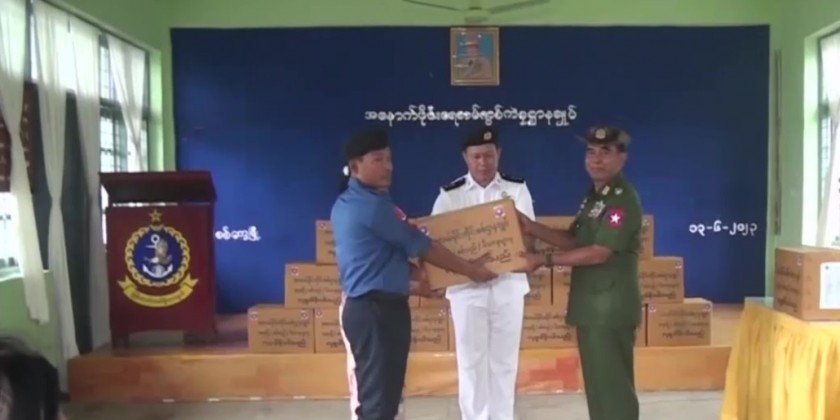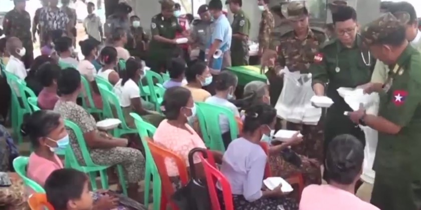After that, they donated the foodstuffs, construction materials, cash assistance and vegetable biryani which is donated by the Skynet for People, Myanmar Licensed Contractors Association, Myanmar Licensed Contractors Association (Rakhine State), Myanmar-China Buddhism and Cultural Exchange Association, Myanmar-India-China International Cooperation & Economic Development Association, Myanmar Licensed Contractors Public Co., Ltd and Inter-Faith Friendship Organization to the military personnel and their family members.
