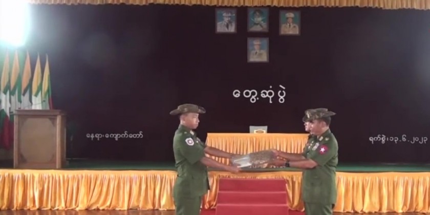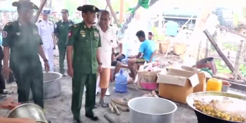 On the 13th of June, Lt-Gen Phone Myat from the Office of the Commander-in-Chief (Army) accompanied by the Commander of the Western Command Maj-Gen Htin Latt Oo and responsible officials cordially met with the military personnel and their family members who are carrying out the rehabilitation tasks in Sittwe, Kan Zauk and Kyauk Taw stations and gave words of encouragement to them.