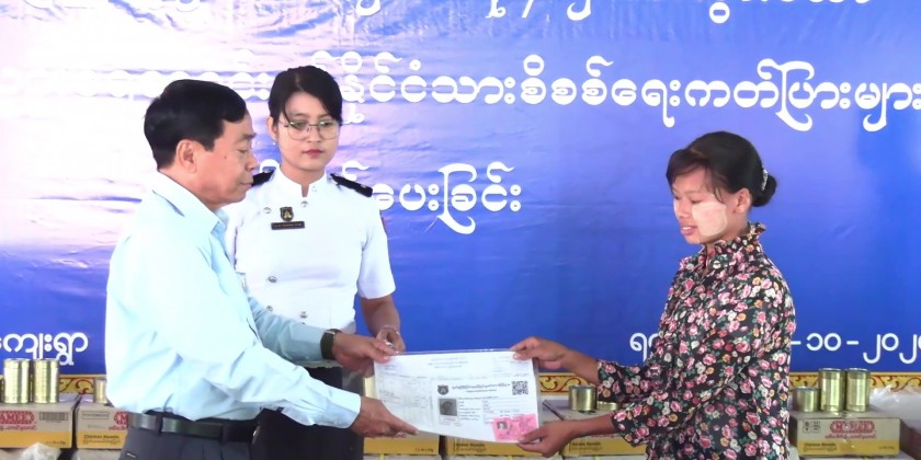 During the event, the household lists and national registration cards were presented to those affected persons from eight village-tracts, along with the foodstuff.