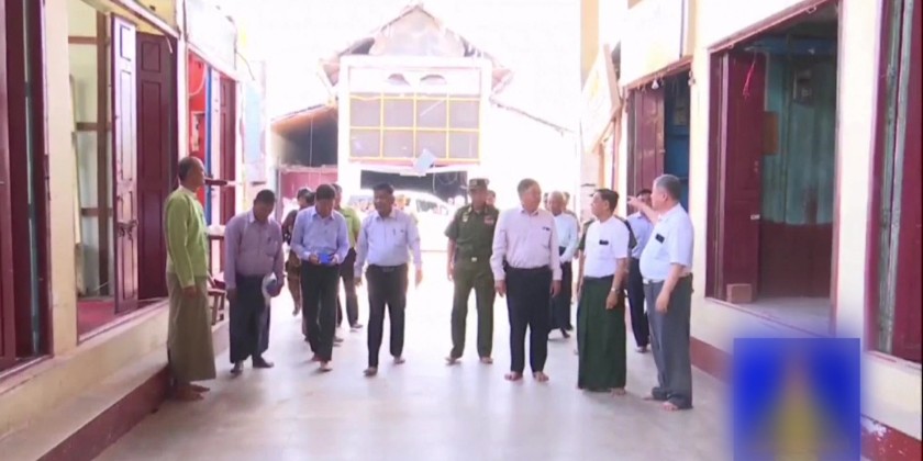 The Generals and party later inspected the clearing of debris at the Golden City Hotel, water supply at No.4 Water Filtering Tank, and clean-up efforts at the Sky Villa as well as the damages along the Mandalay Palace Wall including Si Shay and Kyay Hmone Gateways.