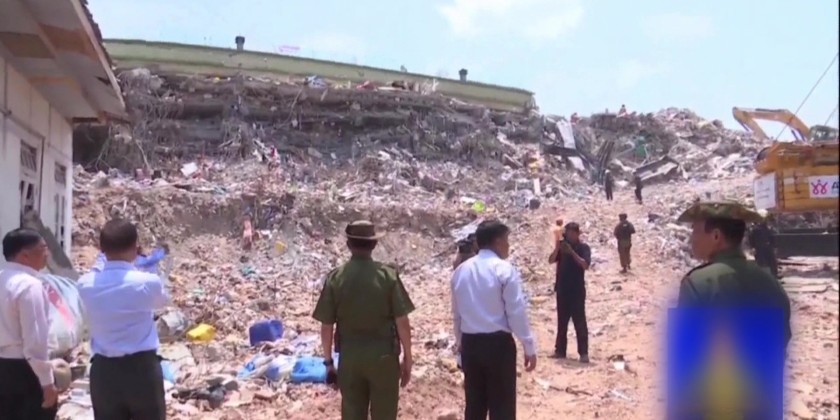 Members of the State Administration Council General Maung Maung Aye and General Nyo Saw visited the Maha Muni Pagoda in Mandalay on Friday. They assessed the damages caused by the severe earthquake, and clearing of debris along with the reconstruction works.