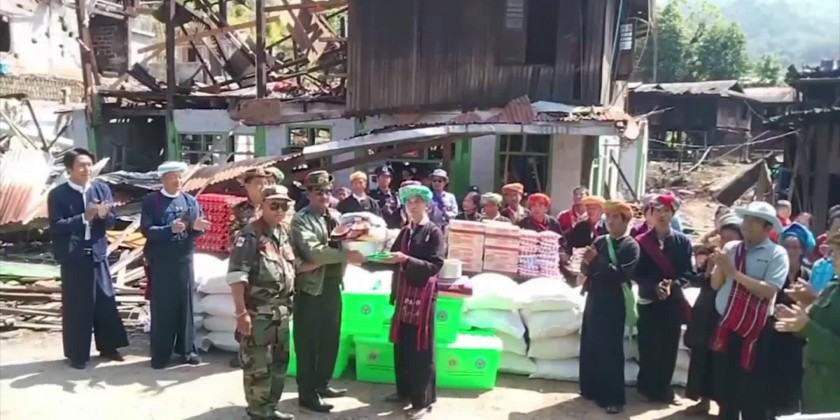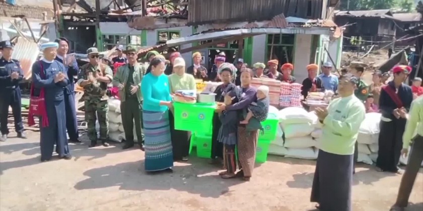 A ceremony to provide aids from Shan State Government on 22nd March was held at Kyaukkachar Village of Hopone Township, Pa-O Self-Administered Zone that was destroyed by terrorists’ arson attack.