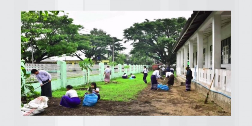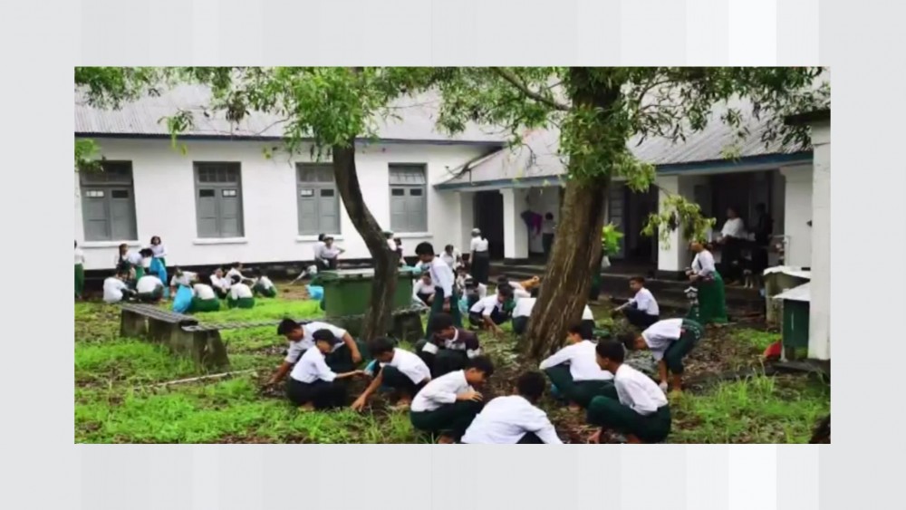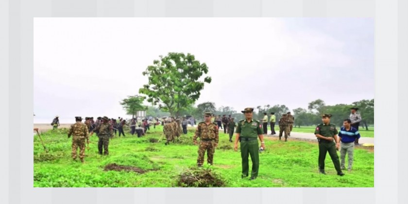 On the 10th of June in Kyaukphyu Township of Rakhine State, Lt-Gen Lu Aye from the Office of the Commander-in-Chief (Army) and departmental officials inspected cleaning process carried out both inside and outside of the No.3 Basic Education High School Compound and clearing land along the township entrance road to plant coconut trees.