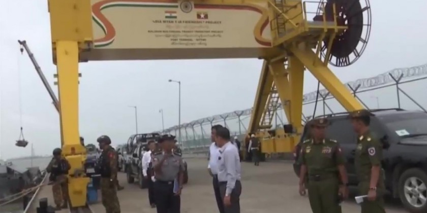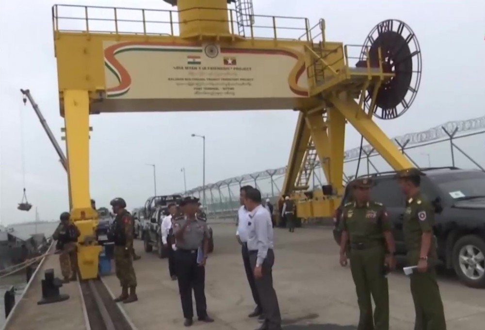 From there, the Vice Senior General and party visited Kaladan Multimodal Port in Sittway and inspected arrival of cargo ships, transportation of relief items and rehabilitation materials for cyclone affected people by rescue teams and gave necessary instructions. On arrival at Sittway University, rector of the University and officials reported renovation of convocation hall damaged by cyclone and opening of courses to the Deputy Prime Minister.