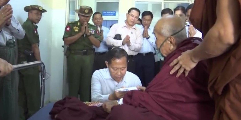 The Vice Senior General and party then paid homage to Done Paik Sayadaw in Rathaedaung Township who is being hospitalized and asked about health condition. The Vice Senior General then comforted locals who are receiving medical treatments at the hospital and provided food stuff and looked into renal medical ward.
