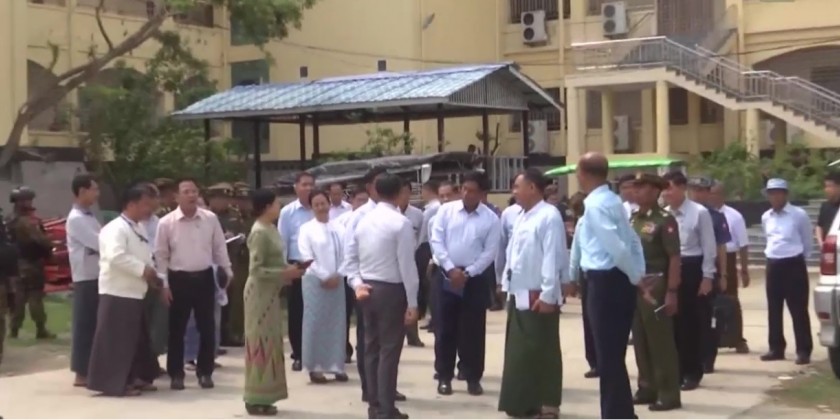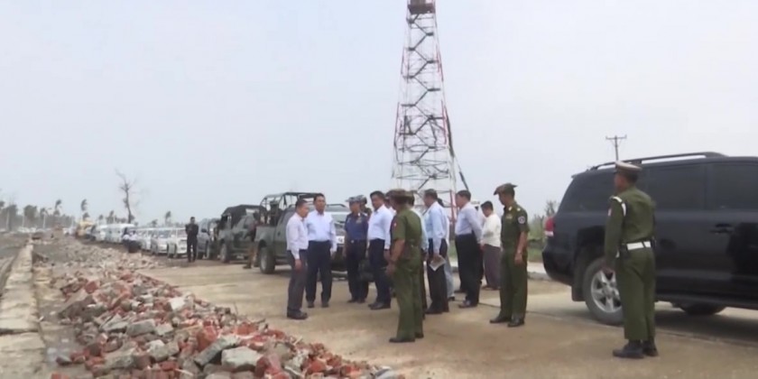 Chairman of National Disaster Management Committee Vice Chairman of the State Administration Council Deputy Prime Minister Vice Senior General Soe Win, SAC member Dr Aung Kyaw Min, Union Ministers, senior military officers, deputy ministers and officials arrived at Sittway Airport on Wednesday.
