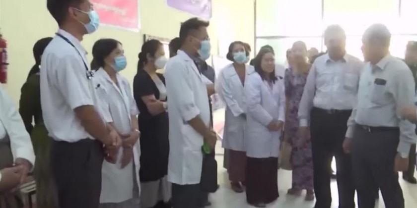 In the briefing hall, Union Minister for Construction U Myo Thant reported on construction of road section on which the Vice Senior General instructed the needs. The Vice Senior General and party then proceeded to 500-bed Sittway General Hospital and heard reports of officials on damages of patient wards and staff housings, nursery and midwifery training school and extended building of traditional medicine hospital and fulfilled the needs.