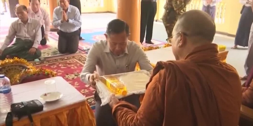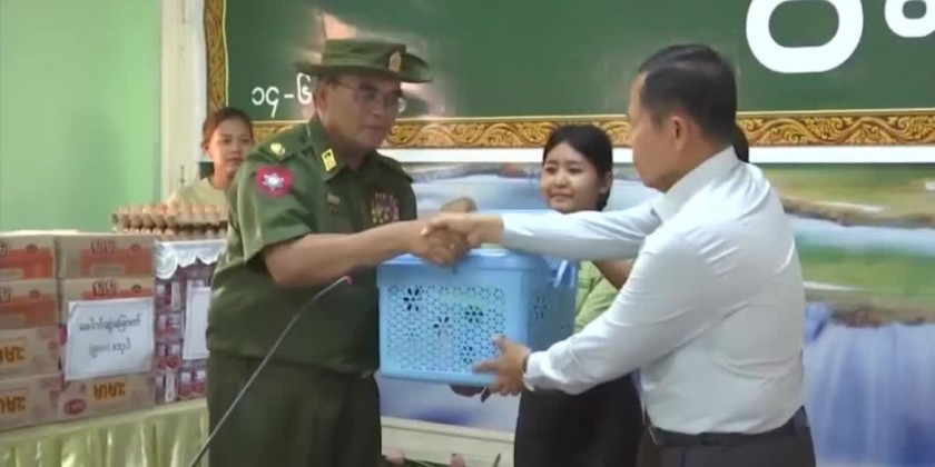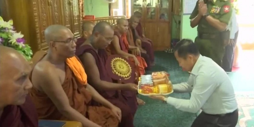 He urged all to keep on maintaining the fine tradition of unity and cooperation in the time of emergency. They then presented foodstuff for the departmental personnel, relief teams and charity organizations. The Vice Senior General ad party also visited the monasteries in Maungtaw and Buthitaung and donated offertories to the Sayadaws and members of the Sangha.