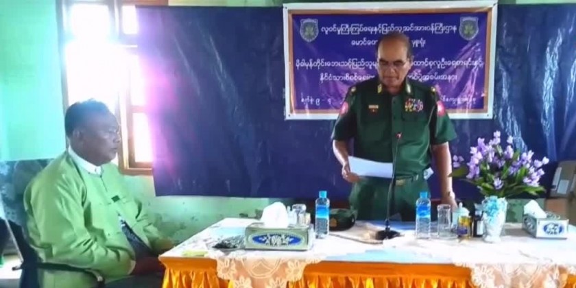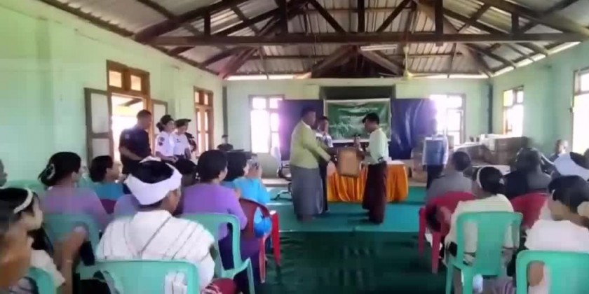 Brig-General Tin Swe, who is currently in Maungtaw Township of Rakhine State for rehabilitation process, presented family lists and National Registration cards lost or damaged during the extremely severe cyclonic storm ‘MOCHA’ to locals of InnDin Village.