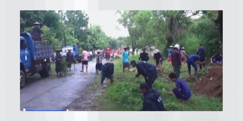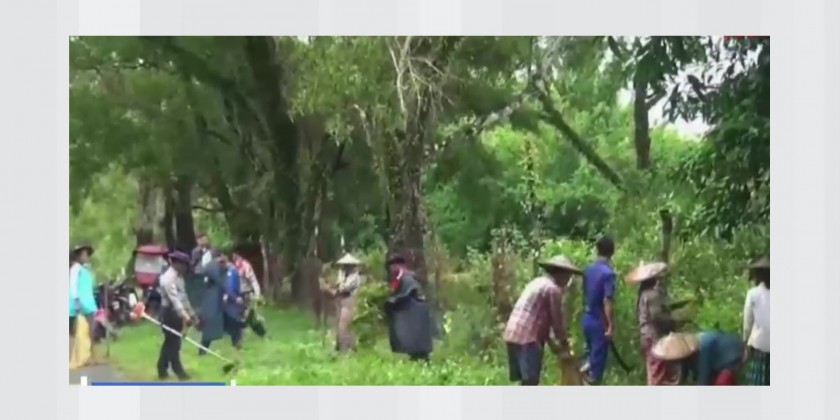 On the 28th of July, in KyaukPhyu Township of Rakhine State, Lt-Gen Lu Aye together with the departmental officials viewed the cleaning of bushes alongside the road in Asoeya ward.