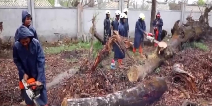 Also, Lt-General Phone Myat and members supervised cleaning up tree branches fallen by the storm “Mocha”. They also inspected vessels carrying construction materials to be used in the rehabilitation works to arrive in the designated areas in an orderly manner.