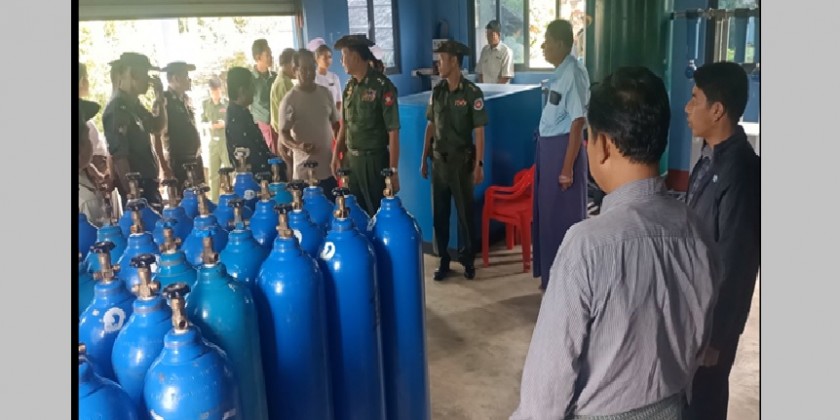 Then, he observed and inspected Oxygen production condition at the Oxygen Plant in the compound of Buthidaung People’s Hospital. The responsible officials reported the condition of the oxygen plant which can produce 80 to 120 40-liter bottles per day and currently, the 40-liter bottles of oxygen needed for patients at the Hospital are being used. There, he also coordinated the needs.