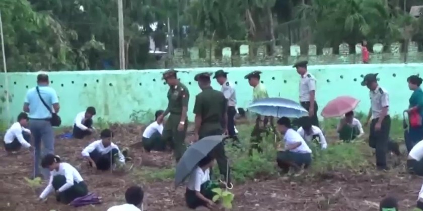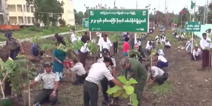 In Rathaedaung Township, General Aung Myo Tun attended the monsoon tree planting ceremony at the No. (1) Basic Education High School on 29th July.