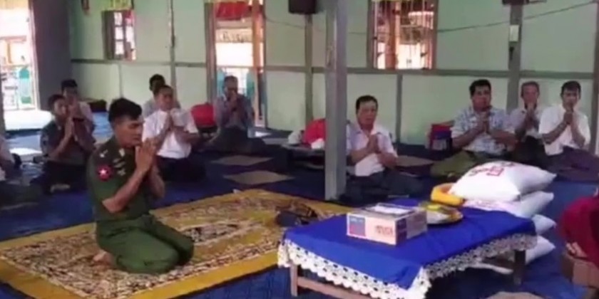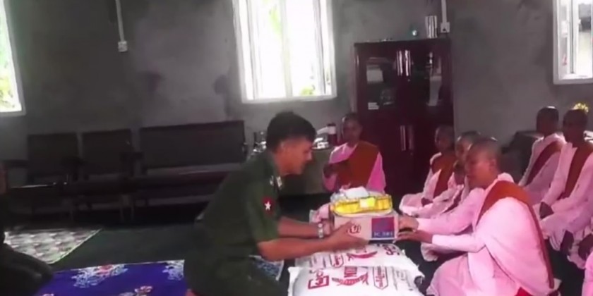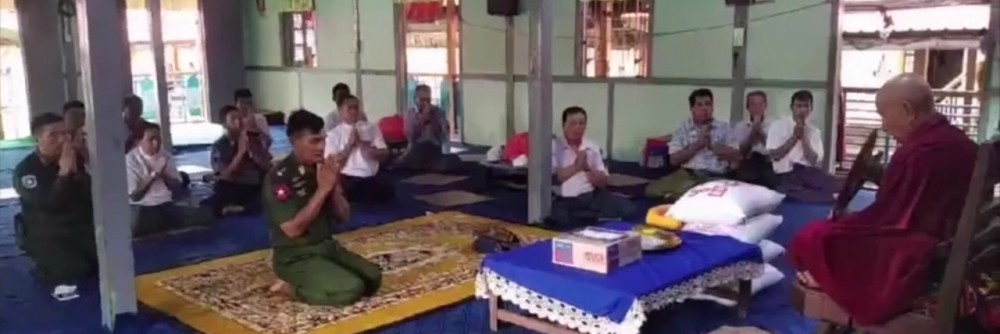 On the 12th of July, Lt-Gen Lu Aye from the Office of the Commander in Chief (Army) and departmental officials who are currently in Kyaukphyu Township visited the Shwe Nanthar Pariyati Monastery, paid homage to the Sayadaw and offered rice, cooking oil and other food items.