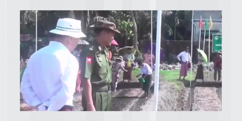 On the 30th of June, Lt-Gen Lu Aye from the Office of the Commander in Chief (Army) and departmental officials who are currently in Kyaukphyu Township attended the demonstration ceremony of monsoon paddy planting in HtaungMileKwin area of AsoeYa Ward.