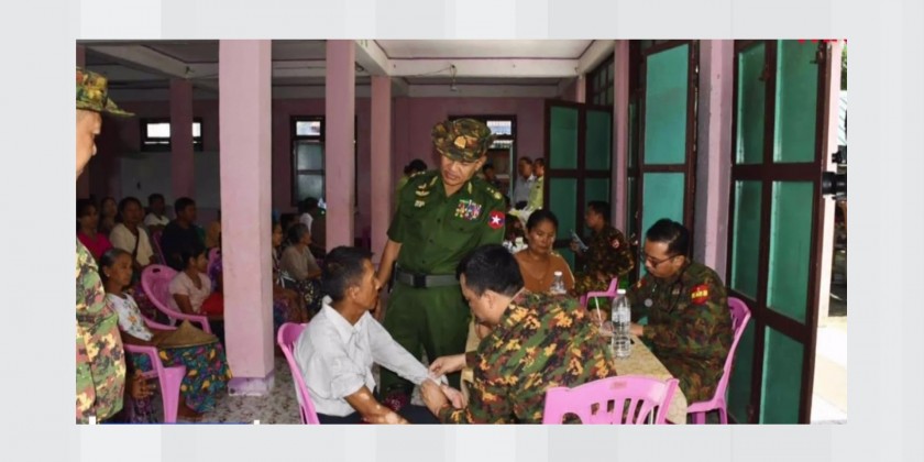 Then, they arrived at Sana Linkarya Monastery in Ayarshi Ward and viewed providing health care services to the locals. And, Lt-Gen and officials provided foodstuff and traditional medicines donated from Traditional Medicine entrepreneurs to the patients.