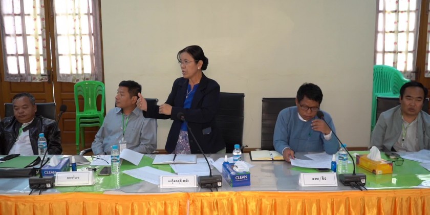 After that, an official of Chin State Government reported providing assistance to cyclone affected people by power point presentation and departmental officials reported on rehabilitation tasks being implemented by respective committees, measures for internet access in Paletwa and temporary renovation of damaged teaching buildings before school opening season.
