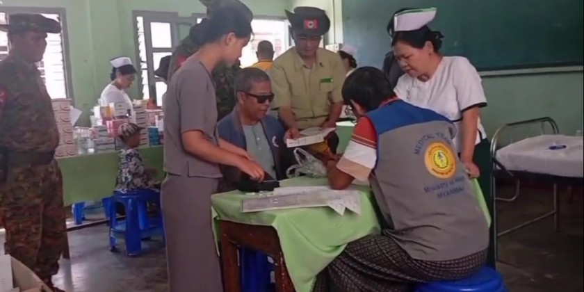 Additionally, members of security forces are carrying out mine clearance operations in government offices and public areas within Kyaukme Township. Moreover, for the healthcare of local residents, a temporary hospital has been set up at the Labamuni Chinese Temple in Kyaukme, staffed by collaborating doctors and nurses from the Ministry of Health and the Tatmadaw, providing medical treatment.