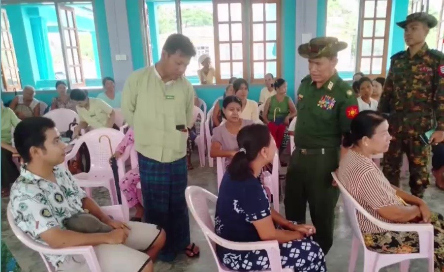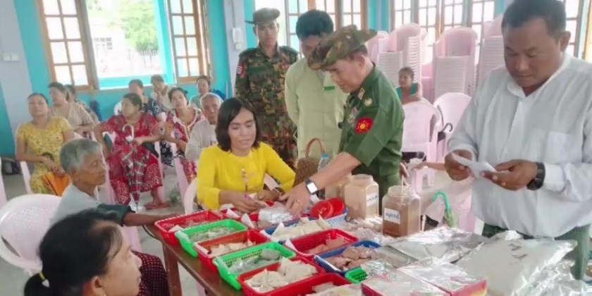 Brig-Gen Kyaw Kyaw Soe from the Office of the Commander-in-Chief (Army) currently in Myebon in Rakhine State along with officials inspected healthcare services given by the mobile medical teams to locals at the town hall of Myebon Township and encouraged the locals receiving the medical treatment.