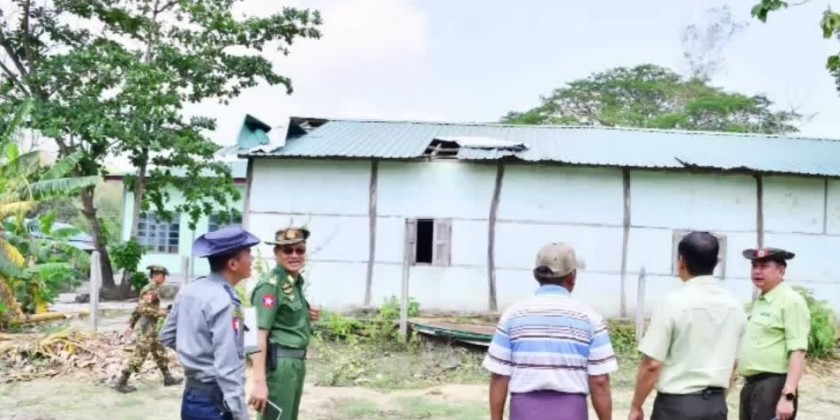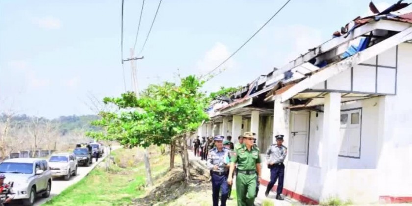 Lt-Gen Lu Aye, Brig-Gen Zaw Min Aye and relevant officials arrived in Kyaukpyu Township on Saturday to conduct rehabilitation processes, meet the members of the Disaster Management Committee, and inspected the losses and damages.