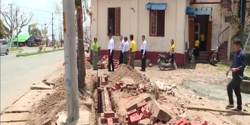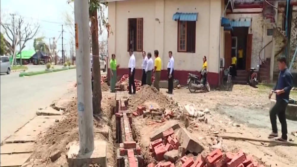 Member of State Administration Council Deputy Prime Minister Union Minister Admiral Tin Aung San inspected the completing rehabilitation and cleaning of Sittwe Strand Road and Sittwe Central Post Office in the morning on 27th May.