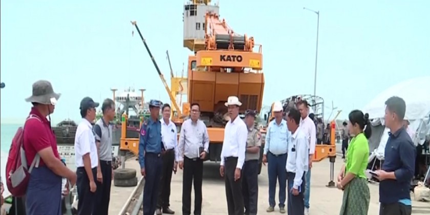 Next, the SAC member DPM arrived at Sittwe multipurpose port and inspected the loading the rescue and relief items onto the naval landing ships to transport to the cyclone affected regions.