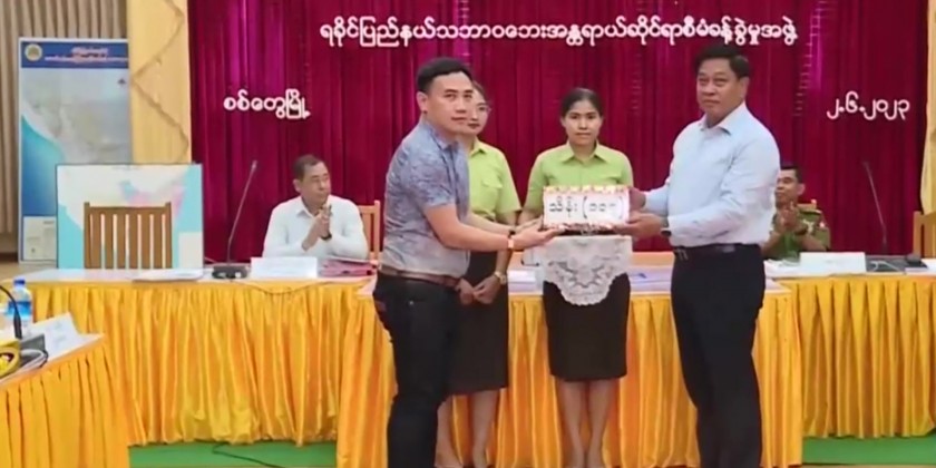 On the same day, they attended the cash donation ceremony to carry out rehabilitation tasks in cyclone-affected areas at Rakhine State Government Office, and accepted the cash and basic foodstuffs.
