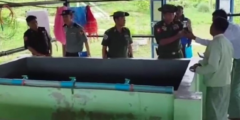Afterwards, Lt. Gen and party observed the hatchery camp at Myoma Ceti Taung village where fish breeding works including fingerlings distribution and production are being implemented by the Department of Fisheries.
