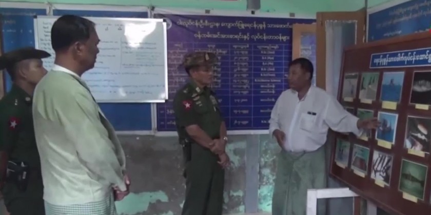 On 21st of June, Lt. Gen Lu Aye from Office of the Commander in Chief (Army) currently in Kyauk Phyu township of Rakhine state along with departmental officials inspected draining the drainages at ASoeYa ward and renovation works of staff housing at Saltwater Shrimp Hatchery Camp in Kyaukphyu Township and instructed the needs.