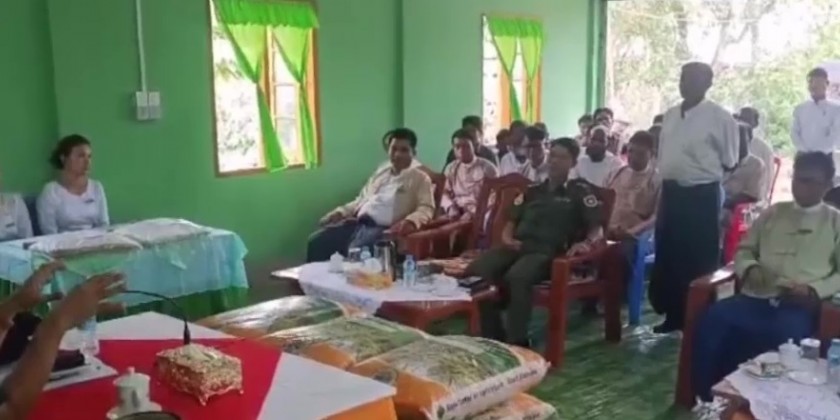 Then, Lt. Gen and party attended the ceremony on provision of quality strains for 120 acres of pedigree seeds production which is to be implemented by the farmers and MPE Urea fertilizer held at the meeting hall of Agriculture Department in the township. There, 120 baskets of paddy strains and 1000 bags of Urea fertilizer were provided and officials coordinated the needs upon the reports of the farmers. From there, Lt. Gen and party inspected the storage warehouses for paddy and fertilizer and the relevant officials are asked to make systematic arrangement inside the storage.