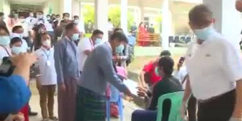 Health officials gave healthcare guidelines to those released from the 14-day quarantine. Evidence on the 14-day quarantine is also given to those released from the quarantine centers in Nay Pyi Taw Council area. About 900 people have been quarantined in the area.