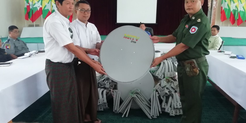 Handover Ceremony of MRTV DTH Satellites sent by the Ministry of Information for the Mocha-hit locals in Myan Aung Township of Rakhine State was held at the General Administration Department on Wednesday.