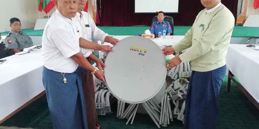 On the occasion, Brig-Gen Kyaw Kyaw Oo delivered an opening speech saying that the MRTV DTH Satellites were provided for the locals to be able to receive true information and weather forecast issued by the Department of Meteorology and Hydrology in case of natural disasters. Afterwards, the Brig-Gen and officials presented 50 MRTV DTH Satellites through the ward/village administrators.