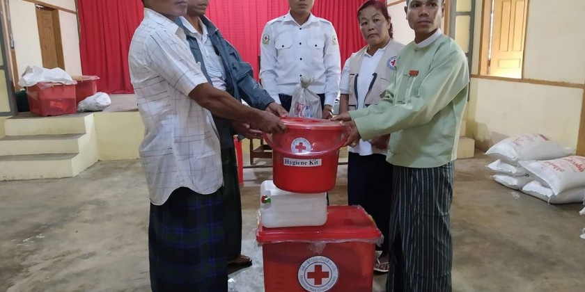 Red Cross Society (Yayphyu) provided relief aid to Flood-affected people and strong wind victims in Kalainaung Township area of Dawei District. Hygiene Kit baskets were provided to households from 9 houses affected by the floods and strong winds, according to the township information and public relation department.