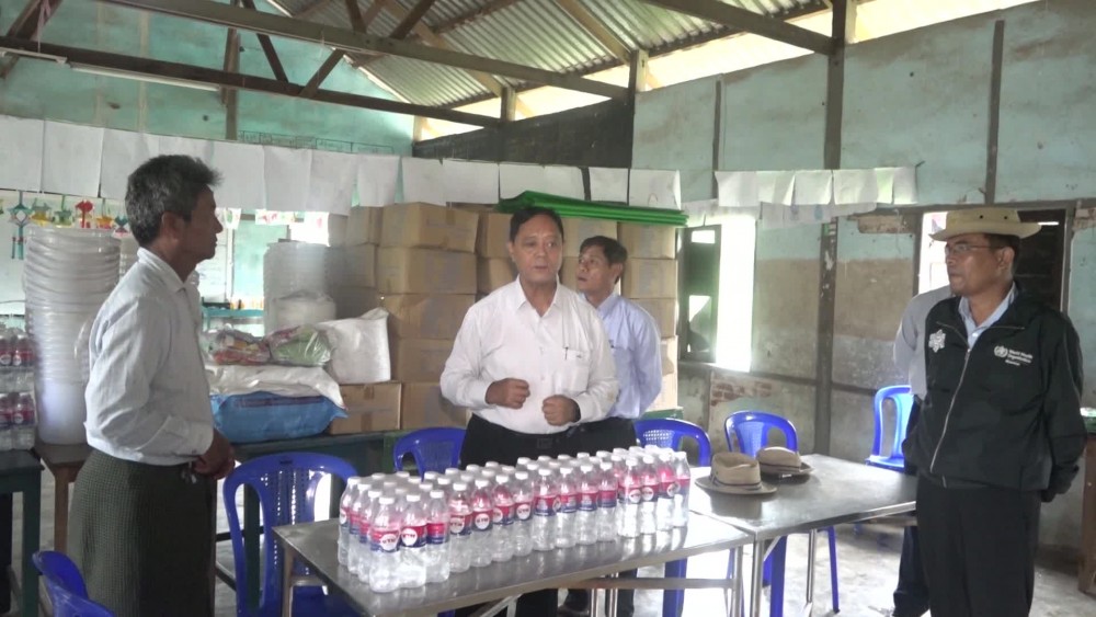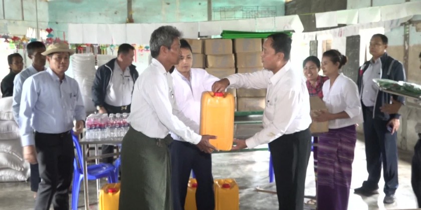 On 13th September, the Union Minister and party visited Basic Education Middle School in Nat Thuye Village of Pyinmana Township and comforted the flood victims from Zephyupin, ThitSeint Pin, Hnan Taw and Paw San Khawt villages and provided rice bags, edible oil, foodstuff and necessary supplies, inspected the drinking water distribution.