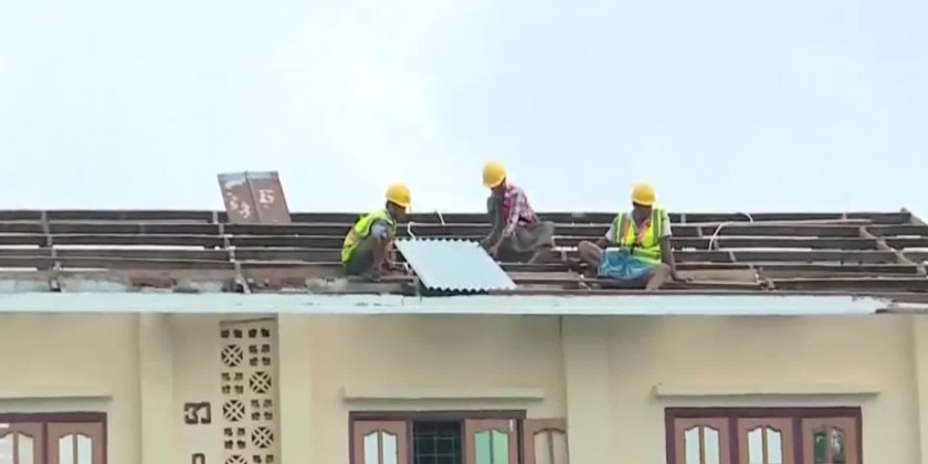 Member of the State Administration Council, Deputy Prime Minister, Union Minister for Transport and Communications Admiral Tin Aung San, Union Minister for Border Affairs Lt. General TunTunNaung and party inspected the rehabilitation works at cyclone-affected areas in Sittwe township of Rakhine State on Saturday.