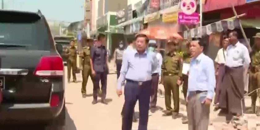 Chairman of the State Administration Council Prime Minister Senior General Min Aung Hlaing inspected the rescue and relief measures at the quake hit areas in Nay Pyi Taw Council area on Sunday.