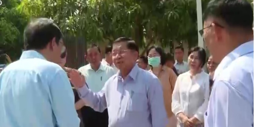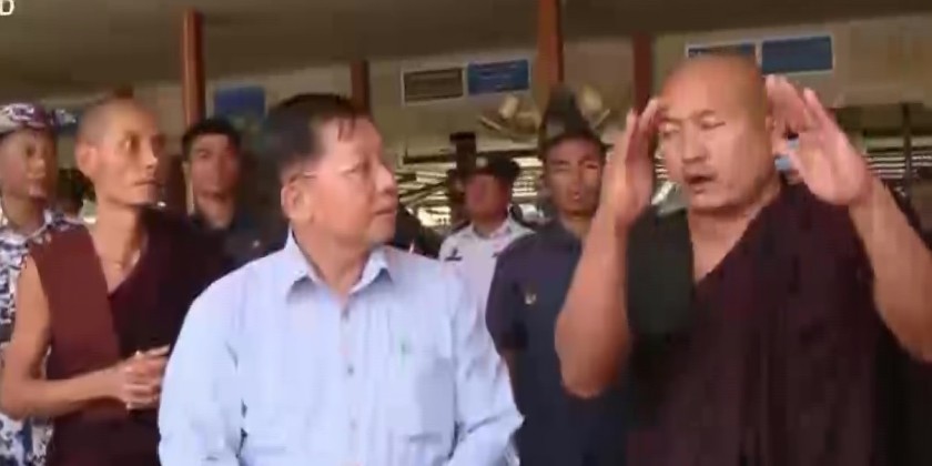 The Prime Minister and party later visited Khaymar Thiwun Monastery in Pyinmana and inspected the collapsed prayer hall which is under the clearing process. He also paid respect to the presiding Sayadaw and donated offertories. They then oversaw the damages of buildings in Pyinmana and instructed the need for speedy clearing of debris.