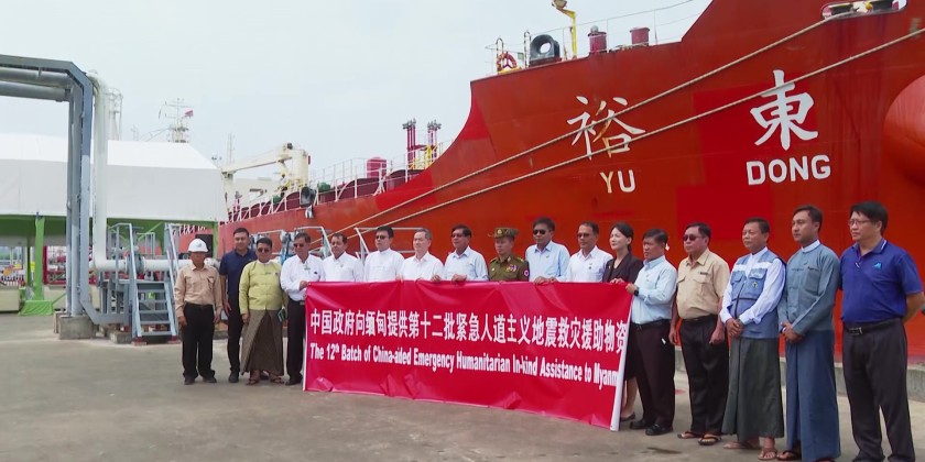 In order to assist in the recovery efforts at the affected areas due to the powerful Mandalay earthquake, China made contribution by donating relief supplies. This is the 12th donation of relief materials, contributed by China. The donated fuel will be distributed to the quake-hit areas under the supervision of the Ministry of Energy.