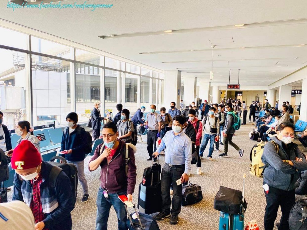 The relief flight departed to Yangon International Airport via Narita International Airport in Tokyo at 1:35 a.m Thursday and carried 156 Myanmar people who could not leave for Myanmar in time, the scholars, those who are cut off their jobs, who complete their trainings and seamen who stranded in the ports of Japan.