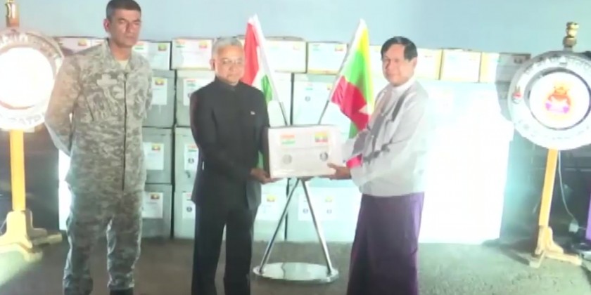 During the handover ceremony, Indian Ambassador to Myanmar Mr. Mr. Shri Abhay Thakur handed over the relief items to Yangon Region Chief Minister U Soe Thein. Plans are carried out to distribute the donated relief items to the flood victims as soon as possible.